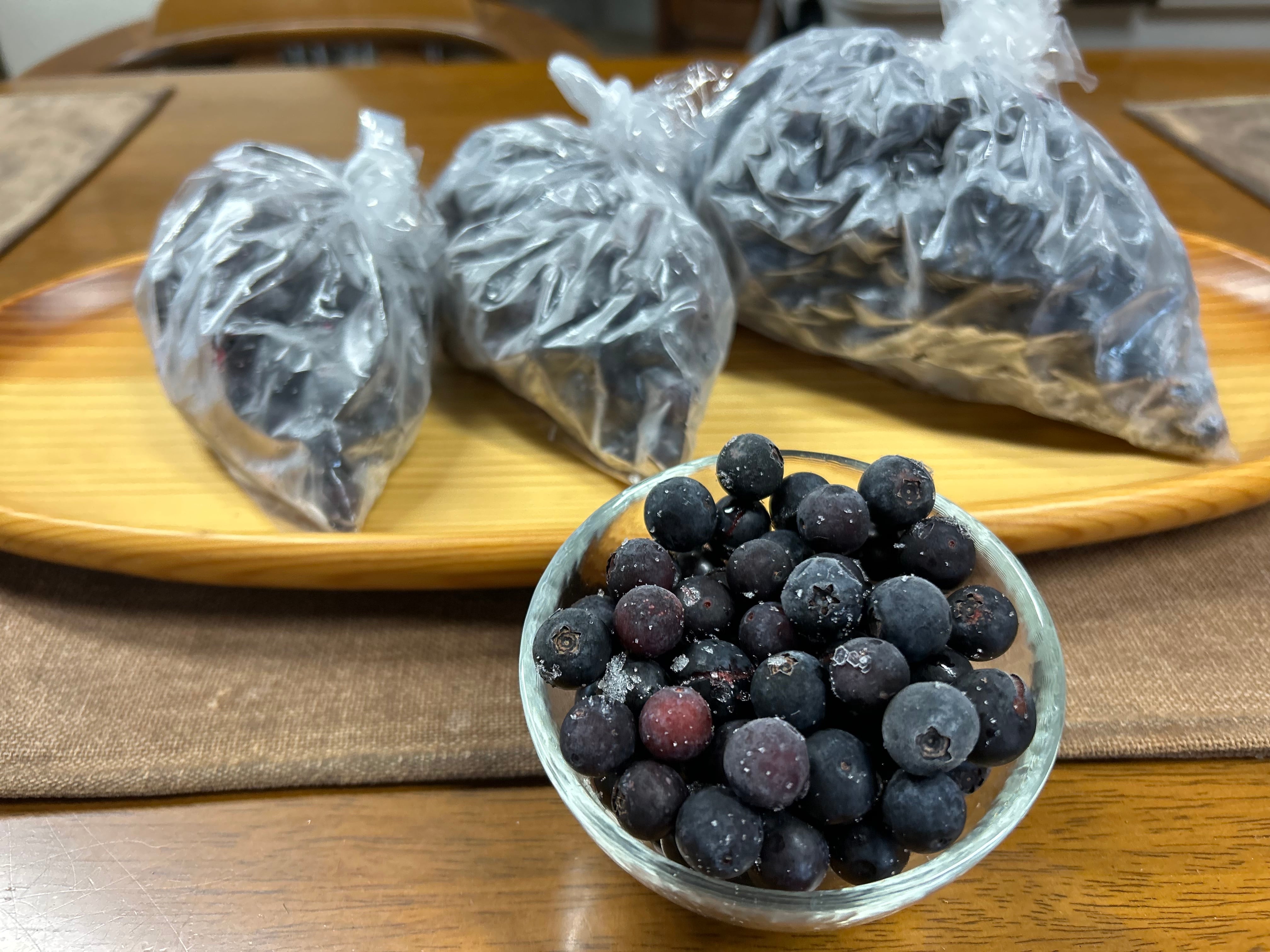 大分の玖珠で採れた無農薬のブルーベリーの旬を冷凍してギュッと閉じ込めた状態でお届けします。